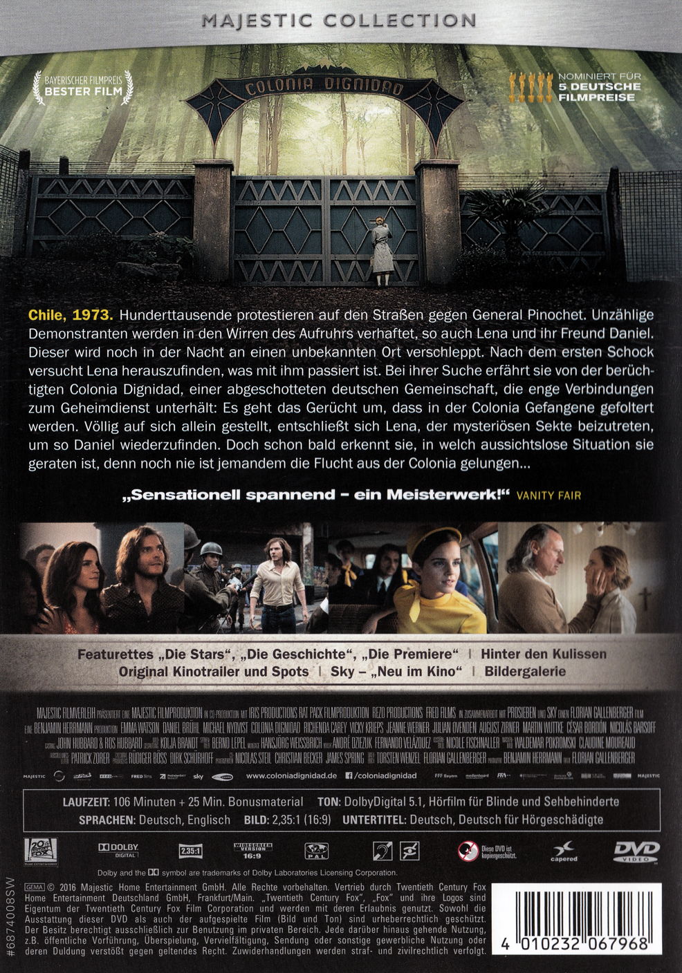 Emma Watson, Daniel Brühl, Michael Nyqvist, Richenda Carey, Vicky Krieps, Julian Ovenden, August Zirner, Martin Wuttke, César Bordón, Nicolás Barsoff...Jeanne Werner, Stefan Merki, Steve Karier, Alexia Moyano, Éric Gigout, Marcelo Vilaro, Cuco Wallraff, Rouven Blessing, Oscar Ali Garci, Gilles Soeder, Lucila Gandolfo, Katharina Müller-Elmau, Paul Herwig, Johannes Allmayer, Herbert Forthuber