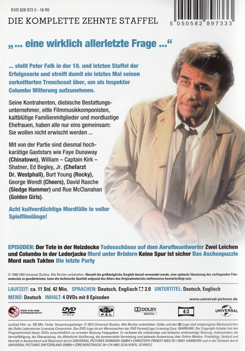 ...stellt Peter Falk in der 10. und letzten Staffel der Erfolgsserie und streift damit ein letztes Mal seinen zerknitterten Trenchcoat über, um als Inspektor Columbo Witterung aufzunehmen.