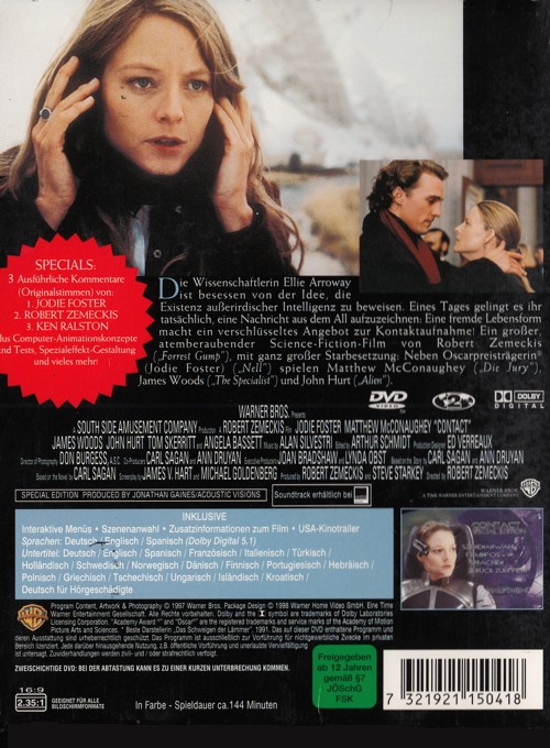 Die Wissenschaftlerin Ellie Arroway ist besessen von der Idee, die Existenz ausserirdischer Intelligenz zu beweisen. Eines Tages gelingt es ihr tatsächlich eine Nachricht aus dem All aufzuzeichnen: Eine fremde Lebensform macht ein verschlüsseltes Angebot zur Kontaktaufnahme!