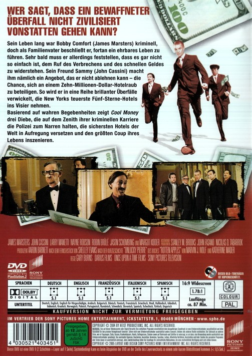 Basierend auf wahren Begebenheiten, zeigt "Cool Money" drei Diebe, die auf dem Zenith ihrer kriminellen Karriere die Polizei zum Narren halten, die sichersten Hotels der Welt in Aufregung versetzen und den grössten Coup ihres Lebens inszenieren...