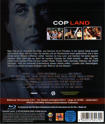 New York ist für Polizisten die Hölle, und Garrison ist ihr Paradies. In der kleinen Stadt jenseits des Hudson leben fast nur Cops, die abends und am Wochenende ihrem gefährlichen Job in dem mörderischen Moloch entfliehen wollen. Garrison ist Cop Land, und Garrison hat seine eigenen Gesetze. Aber dann lässt ein Mord die saubere Fassade der Stadt bröckeln - viele der Cops haben einen dunklen Fleck auf ihrer weissen Weste. Freddy Heflin (Sylvester Stallone), der Sheriff Garrisons, muss die schwerste Entscheidung seines Lebens treffen: Loyalität oder Gerechtigkeit. Steht er zu seinen korrupten Kollegen oder liefert er sie ans Messer?