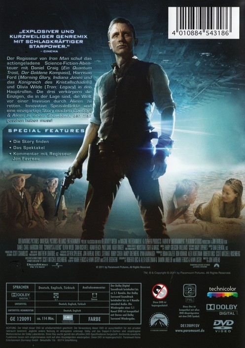 Der Regisseur von Iron Man schuf das actiongeladene Science-Fiction-Abenteuer mit Daniel Craig (Ein Quantum Trost, Der Goldene Kompass), Harrison Ford (Morning Glory, Indiana Jones und das Königreich des Kristallschädels) und Olivia Wilde (Tron - Legacy) in den Hauptrollen. Die drei verkörpern die Einzigen, die in der Lage sind, die Welt vor einer Invasion durch Aliens zu retten. Innovative Spezialeffekte und eine einzigartige Story machen Cowboys & Aliens zu einem Showdown, den man gesehen haben muss!