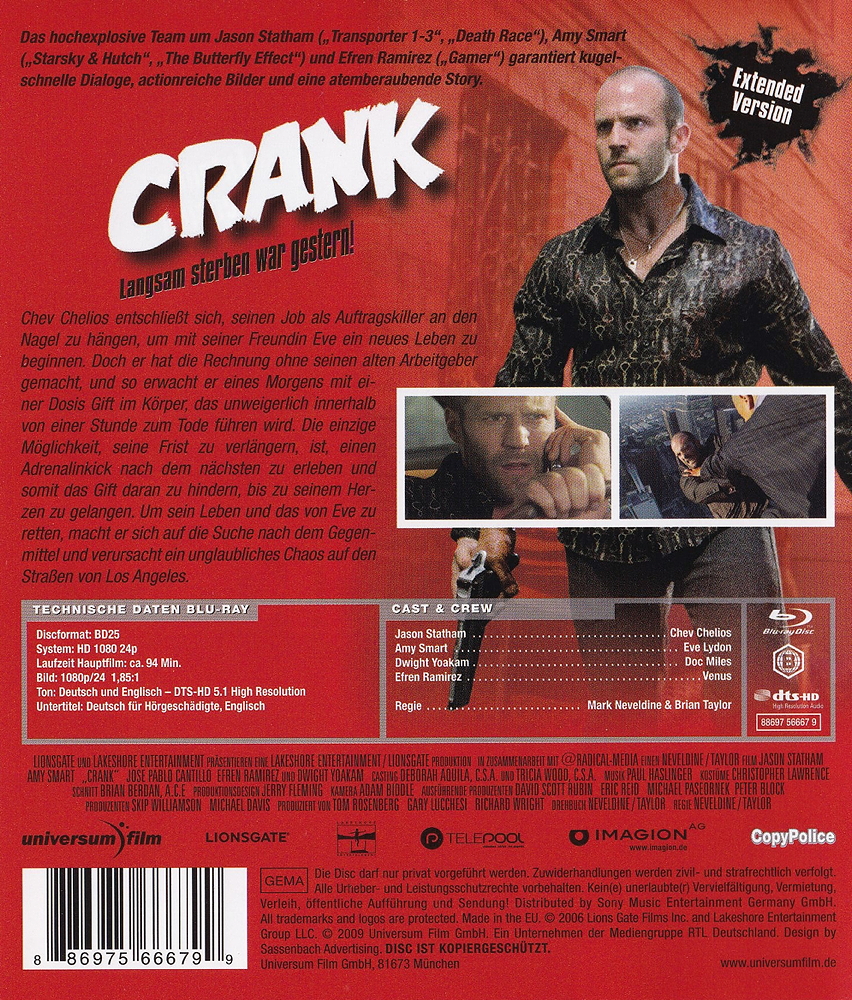 Chev Chelios entschliesst sich, seinen Job als Auftragskiller an den Nagel zu hängen, um mit seiner Freundin Eve ein neues Leben zu beginnen. Doch er hat die Rechnung ohne seinen alten Arbeitgeber gemacht, und so erwacht er eines Morgens mit einer Dosis Gift im Körper, das unweigerlich innerhalb von einer Stunde zum Tode führen wird. Die einzige Möglichkeit seine Frist zu verlängern, ist einen Adrenalinkick nach dem nächsten zu erleben, und somit das Gift daran zu hindern bis zu seinem Herzen zu gelangen. Um sein Leben und das von Eve zu retten, macht er sich auf die Suche nach dem Gegenmittel und hinterlässt dabei eine Schneise der Verwüstung. Er will Ricky Verona finden und nichts, was sich ihm in den Weg stellt, kann ihn aufhalten. Die Zeit rennt und Chev muss buchstäblich in Bewegung bleiben, um zu überleben...