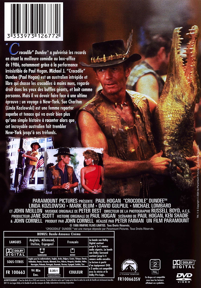 Crocodile" Dundee™ a pulvérisé les records en étant la meilleure comédie au box-office de 1986, notamment grâce à la performance irrésistible de Paul Hogan. Michael J. "Crocodile" Dundee (Paul Hogan) est un australien intrépide et libre qui chasse les crocodiles à mains nues, regarde droit dans les yeux des buffles géants, et boit comme personne. Mais il va devoir faire face à une ultime épreuve: un voyage à New-York. Sue Charlton (Linda Kozlowski) est une femme reporter superbe et tenace qui va avoir bien plus qu'une simple histoire à raconter alors que cet incroyable australien fait trembler New-York jusqu'à ses tréfonds.