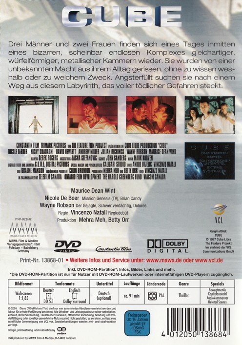 Drei Männer und zwei Frauen finden sich eines Tages inmitten eines bizarren, scheinbar endlosen Komplexes gleichartiger, würfelförmiger, metallischer Kammern wieder. Sie wurden von einer unbekannten Macht aus ihrem Alltag gerissen, ohne zu wissen weshalb oder zu welchem Zweck. Angsterfüllt suchen sie nach einem Weg aus diesem Labyrinth, das voller tödlicher Gefahren steckt.