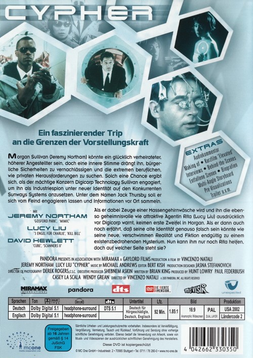 Als er dabei Zeuge einer Massengehirnwäsche wird und die ebenso geheimnisvolle wie attraktive Agentin Rita Lucy Liu ihn ausdrücklich vor Digicorp warnt, keimen erste Zweifel in Morgan. Als er dann auch noch erfährt, dass seine alte Existenz genauso falsch sein könnte wie seine neue, verschwimmen Realität und Einbildung endgültig zu einem grossen, existenzbedrohenden Mysterium. Nun kann ihm nur noch Rita helfen, doch auf welcher Seite steht sie?