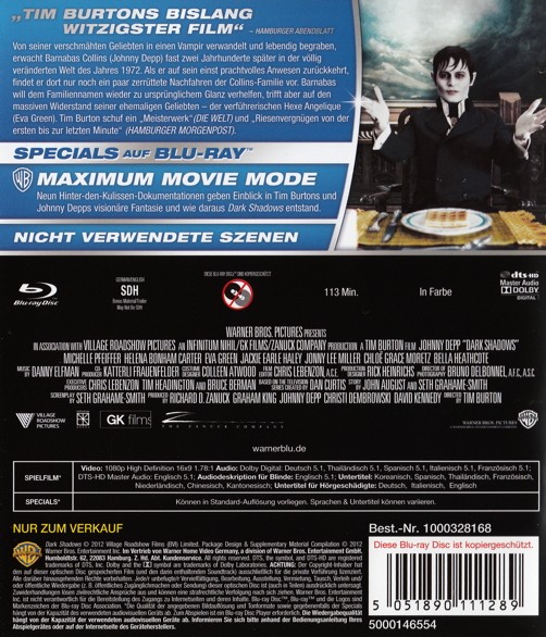 Mit seiner herrlich verdrehten Fantasie präsentiert Tim Burton die Geschichte des eleganten Aristokraten Barnabas Collins, den eine verschmähte Geliebte in einen Vampirt verwandelt, um ihn dann lebendig zu begraben. Fast zwei Jahrhunderte später wird er aus seiner Gruft befreit und entdeckt die völlig veränderte Welt des Jahres 1972. Als er auf sien einst prachtvolles Anwesen zurückkehrt, findet er dort nur noch ein paar zerrüttete Nachfahren der Collins-Familie vor. Barnabas will dem Familiennamen wieder zum ursprünglichen Glanz verhelfen, trifft aber auf den massiven Widerstand seiner ehemaligen Geliebten- der verführerischen Hexe Angelique.