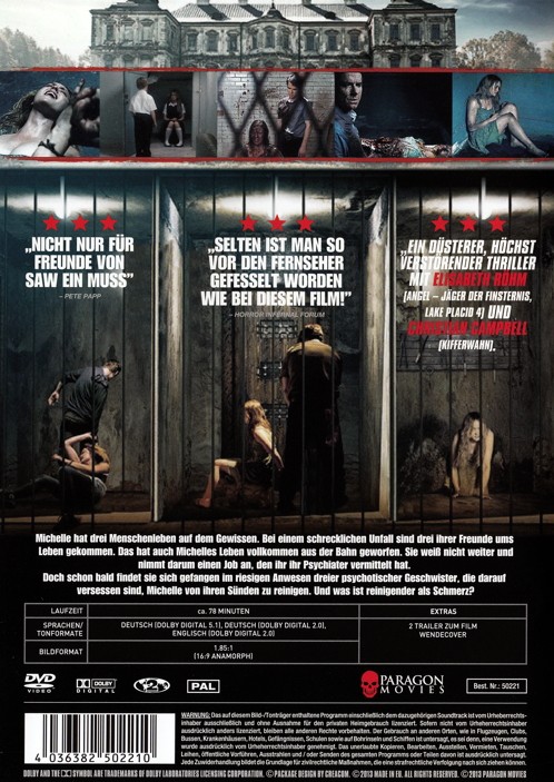 Doch schon bald findet sie sich gefangen im riesigen Anwesen dreier psychotischer Geschwister, die darauf versessen sind, Michelle von ihren Sünden zu reinigen. Und was ist reinigender als Schmerz?