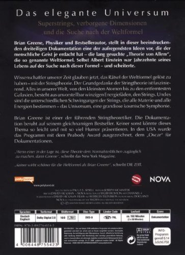 Brian Greene, Physiker und Bestsellerautor, stellt in dieser faszinierenden dreiteiligen Serie eine der aufregendsten Ideen vor, die der menschliche Geist je erdacht hat - die lang gesuchte Theorie von Allem, die so genannte Weltformel. Albert Einstein suchte Jahrzehnte seines Lebens nach diesem heiligen Gral der Physik - und scheiterte. Jetzt aber glauben die hellsten Köpfe unserer Zeit, das Rätsel der Weltformel gelöst zu haben - mit der String-Theorie. Der Grundgedanke der String-Theorie ist faszinierend und wunderschön zugleich: Alles in unserer Welt, von den kleinsten Atomen bis zu den entferntesten Galaxien, ist aufgebaut aus unvorstellbar kleinen, schwingenden Fäden aus purer Energie, den Strings. Und es sind die unterschiedlichen Schwingungen der Strings, die alle Materie und alle Energien bestimmen - das Universum, eine grandiose, kosmische Symphonie. Brian Greene ist einer der führenden String-Theoretiker. Die Dokumentation beruht auf seinem gleichnamigen Bestseller. Keiner sonst könnte dieses Thema so leicht und mit so viel Humor präsentieren. In den USA wurde das Programm mit dem Peabody-Award ausgezeichnet - dem Oscar für Dokumentationen.