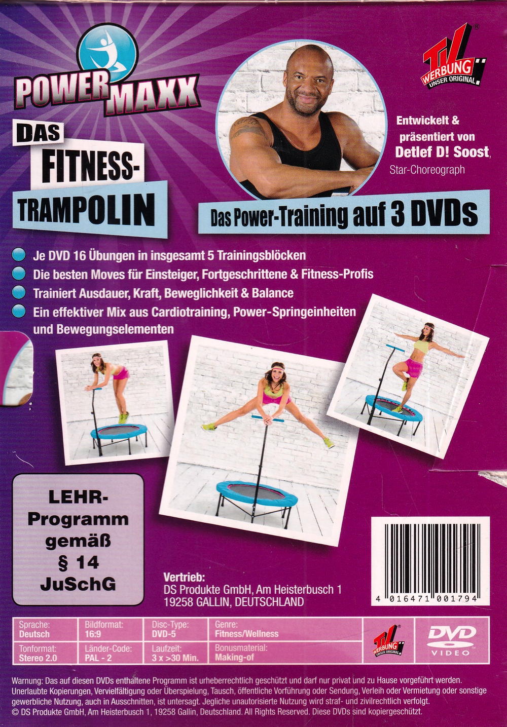 OWER MAXX Training DVD Professional - 16 Übungen in insgesamt 5 Trainingsblöcken - In drei verschiedenen Schwierigkeitsstufen: Basic (Anfänger), Fitness (Fortgeschrittene) und Professional (Profis) Starten Sie in die ultimative Trainings-Dimension! Für alle Trampolin-Fans, die ihr Power-Training perfektionieren wollen: Mit dem High-Level-Workout von Star-Choreograph Detlef D! Soost werden Sie jetzt zum Fitness-Trampolin-Profi!Entwickelt & präsentiert von Detlef D! Soost, Star-Choreograph Auf dieser Trainings-DVD für Fortgeschrittene mit guter Grundausdauer zeigt Ihnen Detlef D! Soost, wie Sie das Beste aus einer Trainingseinheit herausholen können. Neue Power-Übungen in Verbindung mit Cardio-Training sorgen für eine verstärkte Fettverbrennung. Steigern Sie Ihr Fitness-Training von Level 1 und 2 mit noch schnelleren, intensiveren Bewegungselementen und Power-Springeinheiten. Insgesamt 16 Übungen auf dieser DVD trainieren Bauch, Beine und Po und die Rückenmuskulatur, während Ausdauer und Koordination besonders gefordert werden. Starten Sie jetzt mit Star-Choreograph Detlef D! Soost in die ultimative Trainings-Dimension!