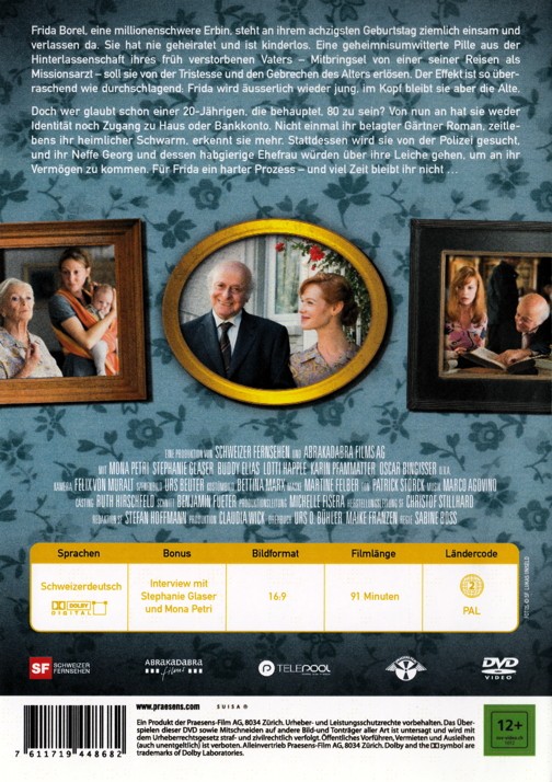Doch wer glaubt schon einer 20-Jährigen, die behauptet, 80 zu sein? Von nun an hat sie weder Identität noch Zugang zu Haus oder Bankkonto. Nicht einmal ihr betagter Gärtner Roman, zeitlebens ihr heimlicher Schwarm, erkennt sie mehr. Statt dessen wird sie von der Polizei gesucht, und ihr Neffe Georg und dessen habgierige Ehefrau würden über ihre Leiche gehen, um an ihr Vermögen zu kommen. Für Frida ein harter Prozess - und viel Zeit bleibt ihr nicht...