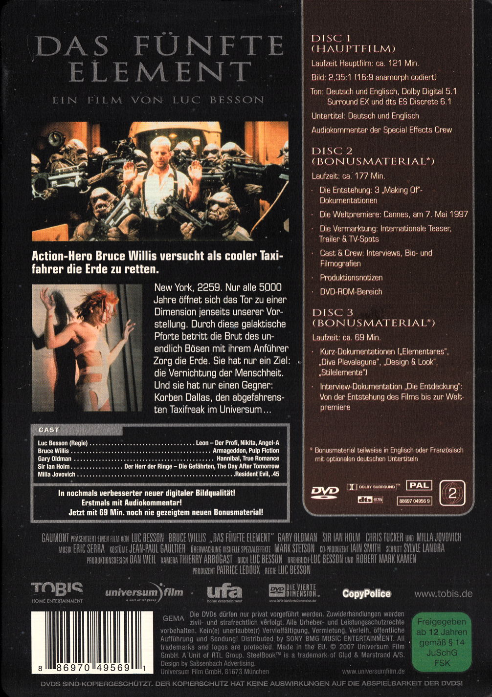 New York, 2259. Nur alle 5000 Jahre öffnet sich das Tor zur Dimension jenseits unserer Vorstellung. Durch diese galaktische Pforte betritt die Brut des unendlich Bösen mit ihrem Anführer Zorg die Erde. Sie hat nur ein Ziel: die Vernichtung der Menschheit. Sie hat nur einen Gegner: Korben Dallas, den abgefahrensten Taxifreak im Universum...