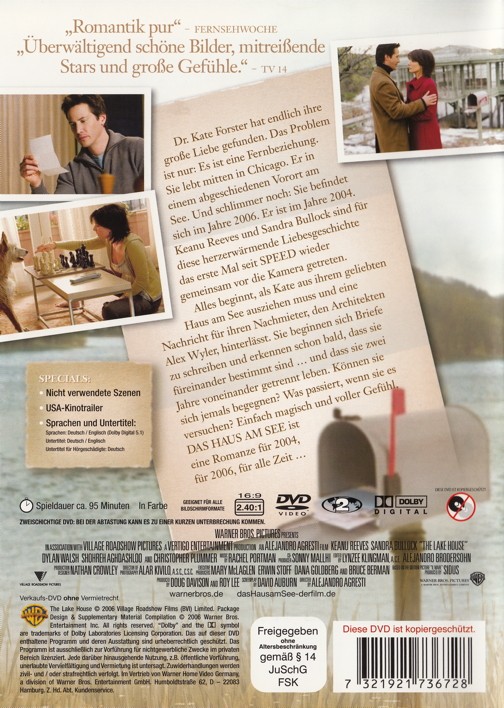 Dr. Kate Forster hat endlich ihre grosse Liebe gefunden. Das Problem ist nur: es ist eine Fernbeziehung. Sie lebt mitten in Chicago. Er an einem abgeschiedenen Vorort am See. Und schlimmer noch: Sie befindet sich im Jahre 2006. Er ist im Jahre 2004. Keanu Reeves und Sandra Bullock sind für diese herzerwärmende Liebesgeschichte das erste Mal seit Speed wieder gemeinsam vor die Kamera getreten.