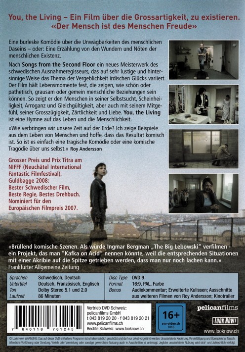 "Freue dich also, Lebendger, der lieberwärmeten Stätte, Ehe den fliehenden Fuss schauerlich Lethe dir netzt." Johann Wolfgang von Goethe, Römische Elegien Zwischen schwarzhumoriger Komödie und existentiellem Drama erzählt der Schwede Roy Andersson von den täglichen Absurditäten des menschlichen Lebens.