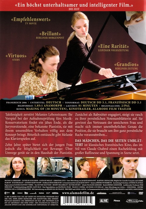 Zehn Jahre später bietet sich der jungen Frau jedoch die Möglichkeit zur Revanche: über Umwege gerät sie in den Haushalt der Pianistin. Zunächst als Babysitter engagiert, steigt sie rasch zu ihrer persönlichen Notenumblätterin auf. Sie gewinnt das Vertrauen der unsicheren Frau und macht sich immer unentbehrlicher.