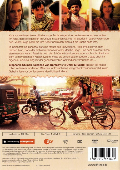 Kurz vor Weihnachten erhält die junge Annie Krüger einen seltsamen Anruf aus Indien: Ihr Vater, den sie eigentlich im Urlaub in Spanien wähnte, ist spurlos in Jaipur verschwunden. Voller Sorge packt sie ihre Koffer und macht sich auf die Suche nach ihm. In Indien trifft sie zunächst auf eine Mauer des Schweigens. Hilfe erhält sie von dem reichen Arun, Sohn der einflussreichen Maharani Maritha Singh, und dem aus den Slums stammenden Karan. Fasziniert von der Schönheit des Landes, aber auch schockiert von dem vorherrschenden Kastensystem, muss sie schon bald entdecken, dass auch ihr eigenes Schicksal eng mit der geheimnisvollen Welt Indiens verbunden ist… Stephanie Stumph, Suzanne von Borsody und Omar El-Saeidi spielen die Hauptrollen in diesem modernen Märchen für Erwachsene voll großer Emotionen und dunkler Geheimnisse vor der faszinierenden Kulisse Indiens.