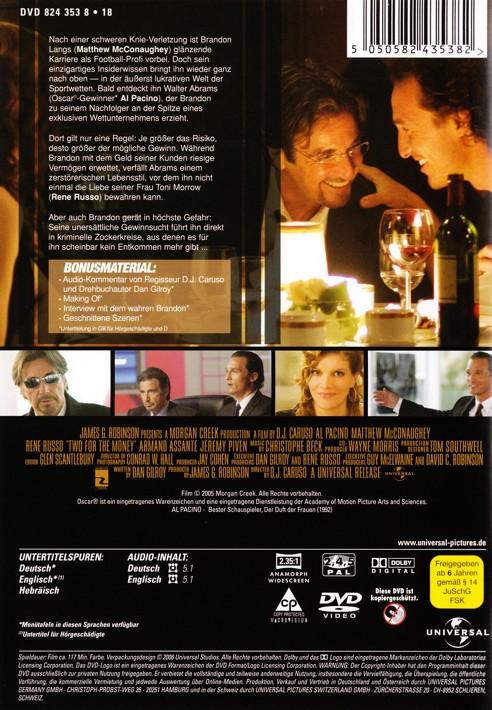 Nach einer schweren Knie-Verletzung ist Brandon Langs (Matthew McConaughey) glänzende Karriere als Football-Profi vorbei. Doch sein einzigartiges Insiderwissen bringt ihn wieder ganz nach oben - in der äußerst lukrativen Welt der Sportwetten. Bald entdeckt ihn Walter Abrams (Oscar-Gewinner Al Pacino), der Brandon zu seinem Nachfolger an der Spitze eines exklusiven Wettunternehmens erzieht.