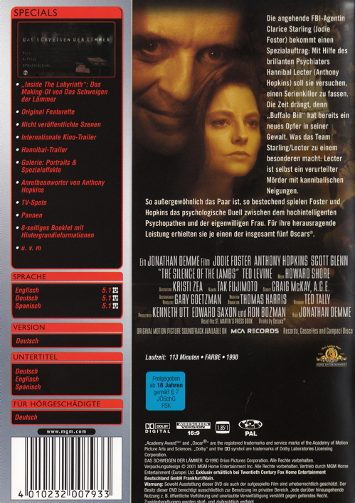 - Titel Das Schweigen der Lämmer [DVD]