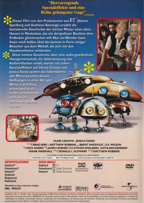Dieser Film von den Produzenten von E.T. (Steven Spielberg und Kathleen Kennedy) erzählt die fantasievolle Geschichte der letzten Mieter eines alten Hauses in Manhattan, das ein skrupelloser Baulöwe dem Erdboden gleichmachen will. Nur ein Wunder kann ihnen noch helfen. Und das kommt in Form einiger Besucher aus dem Weltall, die sich mit den Hausbewohnern verbünden.