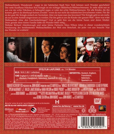 Weihnachtszeit, Wunderzeit - sogar in der hektischen Stadt New York können noch Wunder geschehen! Der nette Kaufhaus-Nikolaus Kriss Kringle ist ein richtiger Bilderbuch-Weihnachtsmann. Er sieht nicht nur so aus wie der echte Nikolaus, er behauptet sogar, er wäre der echte Weihnachtsmann. Für alle Kinder, die ihn kennen, gibt es da überhaupt keinen Zweifel - wenn da nur nicht die realistischen Erwachsenen wären. Für die ist der gute Mr. Kringle einfach nur ein Verrückter. Aber wie kann man das beweisen? Für Kringle geht es um mehr, als nur in eine Anstalt eingewiesen zu werden.Für ihn geht es um die Kinder der ganzen Welt - denn was wäre Weihnachten ohne den Geschenkebringer? Und es geht ihm um die kleine Susan und deren Mutter: Denn gerade diese kleine Familie hätte ein Wunder bitter nötig...