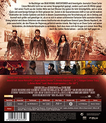 Im Sequel zu Dead Rising: Watchtover wird Investigativ-Journalist Chase Carter nicht nur von seiner Vergangenheit geplagt, sondern auch vom US-Militär gejagt: Seit seiner Flucht aus der Zombie-Hölle von East Mission City quälen ihn tiefe Schuldgefühle, weil er seine loyale und zuverlässige Kollegin im Stich gelassen hat. Zurück in der Quarantänezone stösst er nun auf die wahren Drahtzieher der Zombie-Epidemie und deckt in diesem Zusammenhang eine Verschwörung auf, die in Umfang und Ausmass noch grösser und gewaltiger ist, als er sich in seinen schlimmsten Fantasien hätte vorstellen können. Streng behütet wird dieses Geheimnis vom ebenso knallharten wie skrupellosen General Lyons, der jeden ausschaltet, der den Plänen der Regierung gefährlich werden könnte. Nun liegt es an Chase Carter und seinen Verbündeten, die drohende Katastrophe zu verhindern. Doch dazu muss sich die Gruppe erst einmal ihren Weg durch die Zombie-Horde bahnen - und die Zeit läuft gegen sie...