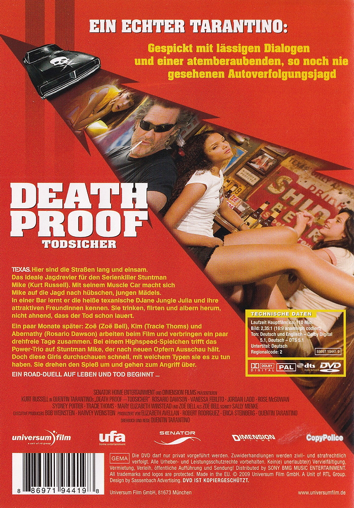 Texas. Hier sind die Strassen lang und einsam. Das ideale Jagdrevier für den Serienkiller Stuntman Mike. Mit seinem Muscle Car macht sich Mike auf die Jagd nach hübschen, jungen Mädels. In einer Bar lernt er die heisse texanische DJane und ihre attraktiven Freundinnen kennen. Sie trinken, flirten und albern herum, nicht ahnend das der Tod schon lauert. Einige Zeit später geniessen drei andere Frauen ihre freie Zeit. Zoe, Kim und Abernathy arbeiten beim Film und haben für ein paar Tage drehfrei. Bei einem Highspeed-Spielchen stösst das Frauen-Trio auf Mike. Doch diese Girls durchschauen schnell, mit welchem Typen sie es zu tun haben. Sie drehen den Spiess um und gehen zum Angriff über. Ein Road-Duell auf Leben und Tod beginnt...