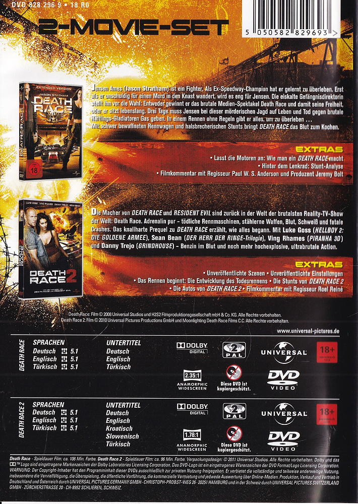 Die Macher von DEATH RACE und RESIDENT EVIL sind zurück in der Welt der brutalsten Reality-TV-Show der Welt: Death Race. Adrenalin pur - tödliche Rennmaschinen, stählerne Waffen, Blut, Schweiss und fatale Crashes. Das knallharte Prequel zu DEATH RACE erzählt, wie alles begann. Mit Luke Goss (HELLBOV 2: DIE GOLDENE ARMEE), Sean Bean (DER HERR DER RINGE-Trilogie), Ving Rhames (PIRANHA 3D) und Danny Trejo (GRINDHOUSE) - Benzin im Blut und noch mehr hochexplosive, ultrabrutale Action.