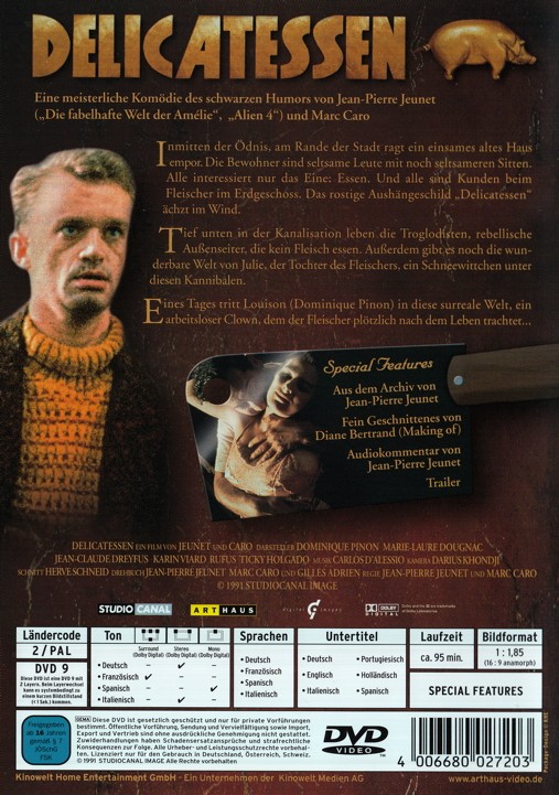 Das alleinstehende Haus am Rande der Stadt wirkt unheimlich und bedrohend. Im Erdgeschoss gibt es Delicatessen. Seine Bewohner sind seltsame, spleenige Leute - auf absurde Weise aufeinander eingespielt. Alle interessiert nur eins: Frischfleisch. Sobald das Fleisch knapp wird, tritt ein kannibalisches Gesetz in Kraft; denn für die Gourmets von Herz und Leber muss gesorgt werden. Wer kommt als nächstes als Frikassee auf den Tisch? Als der Clown Louison als Hausmeister einzieht, wird die Serie des Sonntagsbratens unterbrochen. Die kurzsichtige Tochter des Schlachters möchte Louison nicht scheibchenweise auf den Teller, sondern ganz und "gar" im Bett. Eine Hausverschwörung bahnt sich an. Startschuss für eine Vegetarier-Gang, die in der Kanalisation auf ihre Chance zum Angriff wartet. Denn mit dem perversen Schlachter haben sie noch eine Rechnung offen...