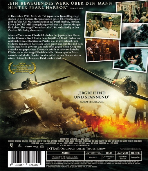 Admiral Yamamoto, Oberbefehlshaber der japanischen Flotte, ist der führende Kopf hinter dem Angriff auf Pearl Harbor und zahlreicher Seeschlachten im Pazifik u.a. in der Schlacht um Midway. Yamamoto hatte sich lange gegen das Bündnis mit dem deutschen Reich gewehrt und sich offen gegen einen Krieg mit Amerika ausgesprochen. Dennoch erfüllt er seine soldatische Pflicht, als er den Angriffsbefehl erhält. Dieses epische Meisterwerk erzählt die Geschichte des militärischen Genies, der in seiner Heimat bis heute als Held verehrt wird.