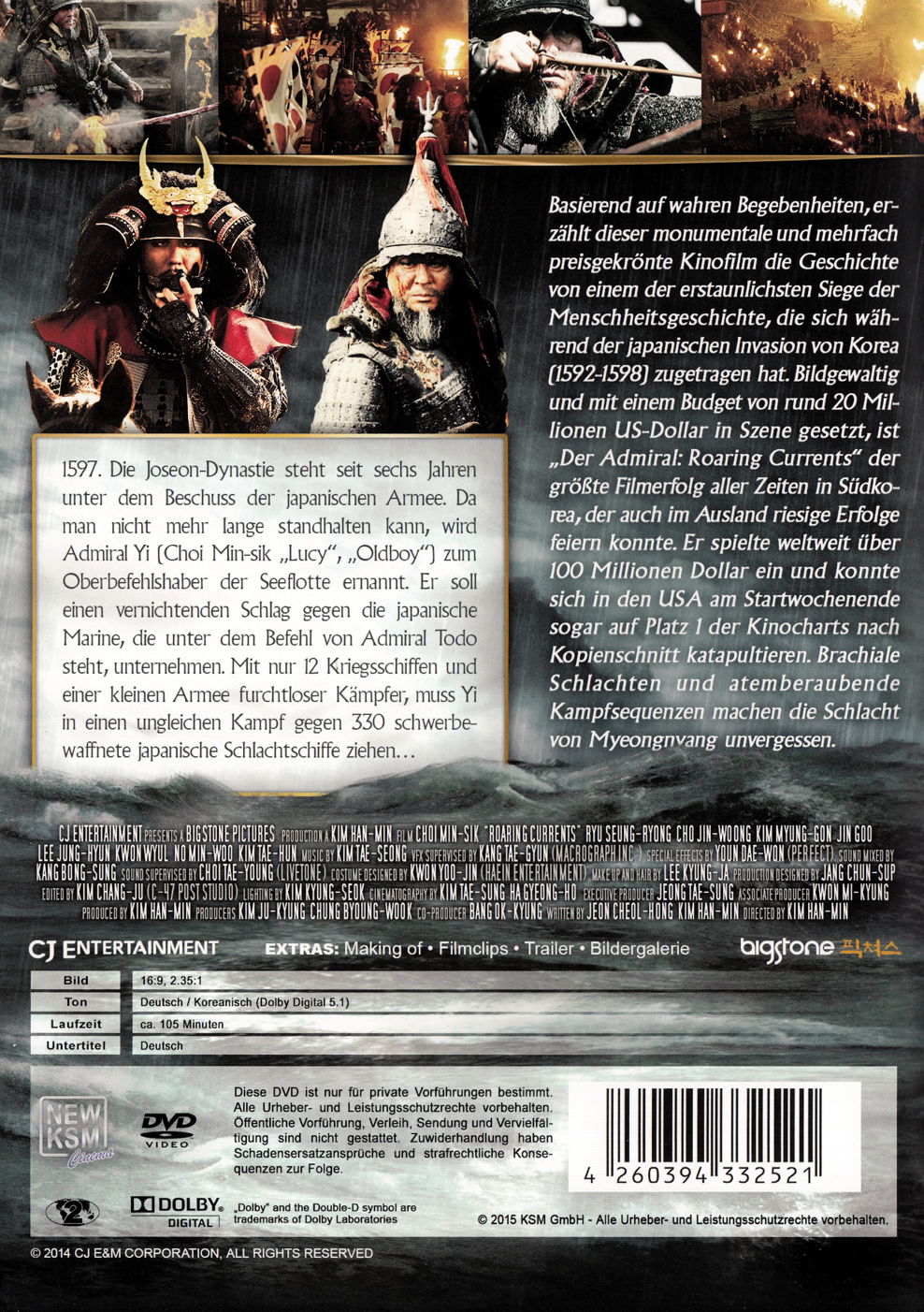 Basierend auf wahren Begebenheiten, erzählt dieser monumentale und mehrfach preisgekrönte Kinofilm die Geschichte von einem der erstaunlichsten Siege der Menschheitsgeschichte, die sich zugetragen hat während der japanischen Invasion von Korea (1592-1598). Bildgewaltig und mit einem Budget von 18,6 Millionen US-Dollar in Szene gesetzt, ist "Der Admiral: Roaring Currents" der grösste Filmerfolg aller Zeiten in Südkorea, der auch im Ausland riesige Erfolge feiern konnte. Brachiale Schlachten und atemberaubende Kampfsequenzen machen die Schlacht von Myeongnyang unvergessen.