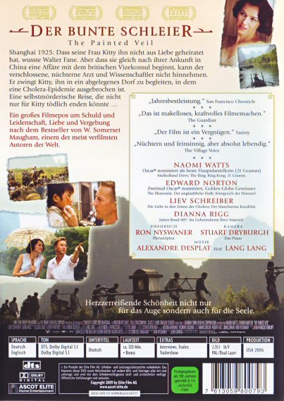 Shanghai 1925: Dass seine Frau Kitty ihn nicht aus Liebe geheiratet hat, wusste Walter Fane. Aber dass sie gleich nach ihrer Ankunft in China eine Affäre mit dem britischen Vizekonsul beginnt, kann der verschlossene, nüchterne Arzt und Wissenschaftler nicht hinnehmen. Er zwingt Kitty, ihn in ein abgelegenes Dorf zu begleiten, in dem eine Cholera-Epidemie ausgebrochen ist. Eine selbstmörderische Reise, die nicht nur für Kitty tödlich enden könnte...