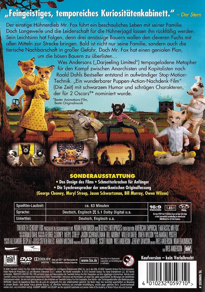 Mr. und Mrs. Fox führen mit ihrem Sohn Ash und ihrem Neffen Kristofferson ein idyllisches Familienleben. Doch nach zwölf Jahren im trauten Heim wird die Beschaulichkeit einfach zuviel für Mr. Fox. Das wilde Tier in ihm gewinnt die Oberhand und der raffinierte Hühnerdieb geht heimlich wieder auf die Jagd. Damit bringt er nicht nur seine Familie sondern auch alle anderen Tiere in Gefahr. Die Geflügelbauern Boggis, Bunce und Bean sind ausser sich vor Wut und scheuen vor nichts zurück, um dem ebenso dreisten wie auch fantastischen Mr. Fox den Garaus zu machen. Die Belagerung durch die Bauern zwingt alle Tiere unterhalb des Fuchsbaus Zuflucht zu suchen. Als es nicht mehr genug Futter für alle gibt, schliessen sie sich im Kampf gegen Boggis, Bunce und Bean zusammen. Und dank seiner scharfen Instinkte, gelingt es Mr. Fox schliesslich, seine Familie und Freunde zu retten.