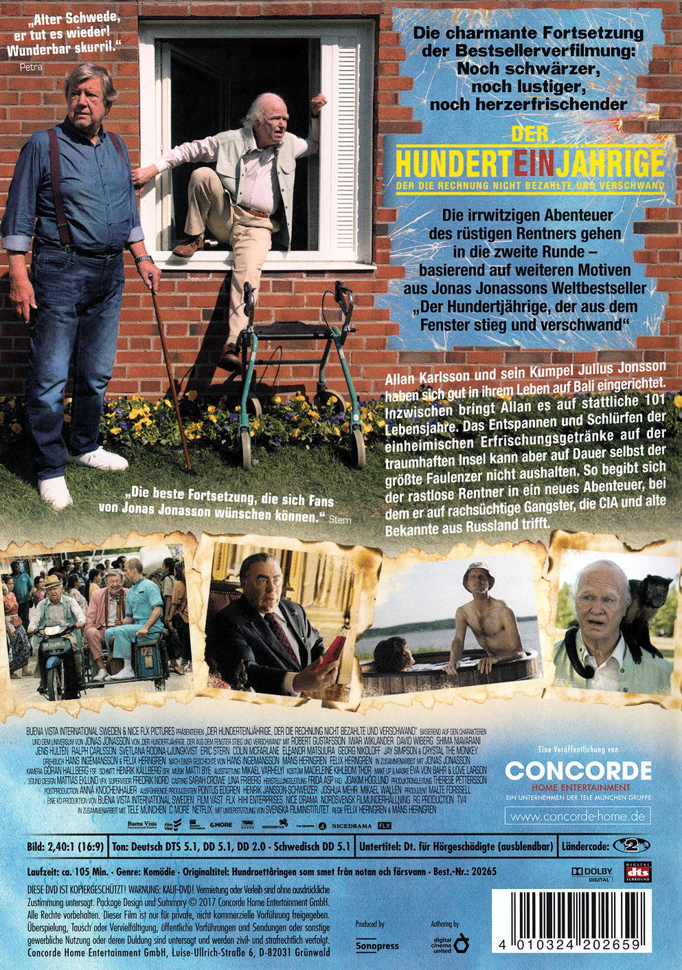 Allan Karlsson und sein Kumpel Julius Jonsson haben sich gut in ihrem Leben auf Bali eingerichtet. Inzwischen bringt Allan es auf stattliche 101 Lebensjahre. Das Entspannen und Schlürfen der einheimischen Erfrischungsgetränke auf der traumhaften Insel kann aber auf Dauer selbst der grösste Faulenzer nicht aushalten. So begibt sich der rastlose Rentner in ein neues Abenteuer, bei dem er auf rachsüchtige Gangster, die CIA und alte Bekannte aus Russland trifft.