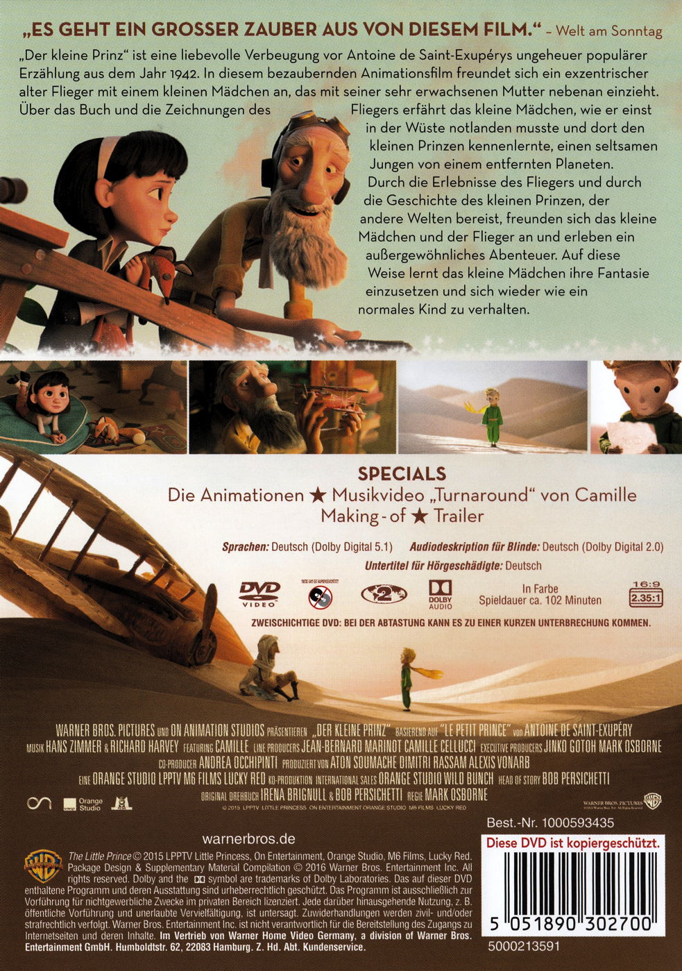 "Der kleine Prinz" ist eine liebevolle Verbeugung vor Antoine de Saint-Exupérys ungeheuer populärer Erzählung von 1942 - sie wurde in über 250 Sprachen übersetzt und weltweit über 145 Millionen Mal verkauft. Im neuen Animationsfilm freundet sich ein exzentrischer alter Flieger mit einem kleinen Mädchen an, das mit seiner sehr erwachsenen Mutter nebenan einzieht. Durch das Buch und die Zeichnungen des Fliegers erfährt das kleine Mädchen, wie er einst in der Wüste notlanden musste und dort den kleinen Prinzen kennenlernte, einen seltsamen Jungen von einem entfernten Planeten.