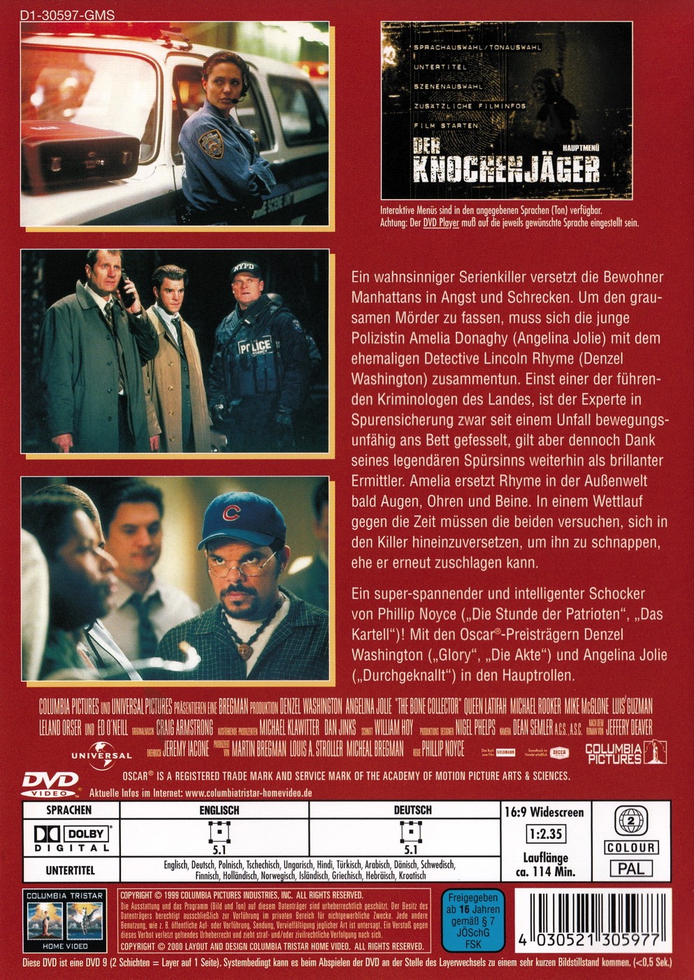 Ein wahnsinniger Serienkiller versetzt die Bewohner Manhattans in Angst und Schrecken. Um den grausamen Mörder zu fassen, muss sich die junge Polizistin Amelia Donaghy (A. Jolie) mit dem ehemaligen Detective Lincoln Rhyme (D. Washington) zusammentun. Einst einer der führenden Kriminologen des Landes, ist der Experte in Spurensicherung zwar seit einem Unfall bewegungsunfähig ans Bett gefesselt, gilt aber dennoch dank seines legendären Spürsinns weiterhin als brillanter Ermittler. Amelia ersetzt Rhyme in der Aussenwelt bald Augen, Ohren und Beine. In einem Wettlauf gegen die Zeit müssen die beiden versuchen, sich in den Killer hineinzuversetzen, um ihn zu schnappen, ehe er erneut zuschlagen kann.
