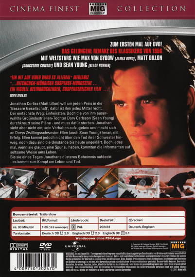 Jonathan Corliss (Matt Dillon) will um jeden Preis in die "Bessere Gesellschaft", dafür ist ihm jedes Mittel recht. Der einfachste Weg: Einheiraten. Doch die von ihm auserwählte Großindustriellen-Tochter Dory Carlsson (Sean Young) durchkreuzt seine Pläne - und muss dafür sterben. Jonathan sieht aber nicht ein, sein Vorhaben aufzugeben und macht sich an Dorys Zwillingsschwester Ellen (auch Sean Young) heran, mit Erfolg. Ellen kommt jedoch nicht über den noch immer ungeklärten Tod ihrer Schwester hinweg. Jedes mal, wenn sie glaubt, eine Spur zu haben, kommen die Informanten auf seltsame Weise ums Leben. Bis sie eines Tages Jonathans düsteres Geheimnis aufdeckt - es kommt zum Kampf um Leben und Tod.