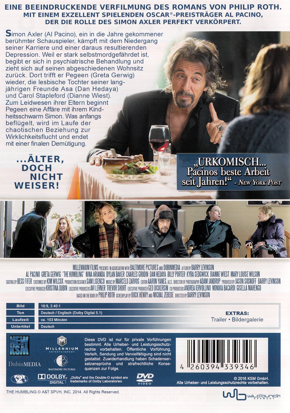 Simon Axler, ein in die Jahre gekommener berühmter Schauspieler, kämpft mit dem Niedergang seiner Karriere und einer daraus resultierenden Depression. Weil er stark selbstmordgefährdet ist, begibt er sich in psychiatrische Behandlung und zieht sich auf seinen abgeschiedenen Wohnsitz zurück. Dort trifft er Pegeen wieder, die lesbische Tochter seiner langjährigen Freunde Asa und Carol Stapleford. Zum Leidwesen ihrer Eltern beginnt Pegeen eine Affäre mit ihrem Kindheitsschwarm Simon. Was anfangs beflügelt, wird im Laufe der chaotischen Beziehung zur Wirklichkeitsflucht und endet mit einer finalen Demütigung. Eine beeindruckende Verfilmung des Romans von Philip Roth mit einem exellent spielenden Oscar®-Preisträger Al Pacino, der die Rolle des Simon Axler perfekt verkörpert.