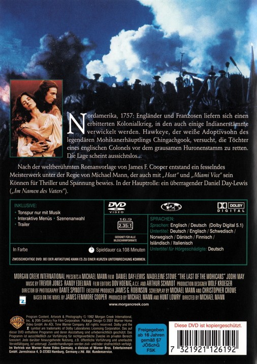 Colm Meaney, Dylan Baker, Pete Postlethwaite, Jared Harris, David Schofield, Terry Kinney, Steven Waddington, Wes Studi, Mark Joy, Jodhi May...Daniel Day-Lewis, Madeleine Stowe, Sebastian Roché, Maurice Roëves, Eric Schweig, Malcolm Storry, Patrice Chéreau, Russell Means, Tim Hopper, Dennis Banks, Tracey Ellis, Edward Blatchford, Patrick Fitzgerald, Benton Jennings, Joe Finnegan, Shawn Michael Perry, Don Tilley, F. Curtis Gaston, Trenton McDevitt, Mike Phillips, Mark A. Baker, Scott Means, Steve Keator, Ethan James Fugate, Michael McConnell, Clark Heathcliffe, William J. Bozic, Thomas John McGowan, Justin M. Rice, Eric D. Sandgren, Thomas E. Cummings, Eric A. Hurley, Alice Papineau, Mac Andrews, Gregory Zaragoza, David Farrow, Mark J. Maracle, Sheila Adams Barnhill, Brent Ponder