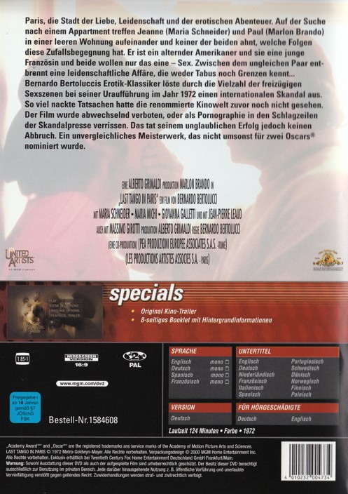 Bernardo Bertoluccis Erotik-Klassiker löste durch die Vielzahl der freizügigen Sexszenen bei seiner Uraufführung im Jahr 1972 einen internationalen Skandal aus. So viel nackte Tatsachen hatte die renommierte Kinowelt zuvor noch nicht gesehen. Der Film wurde abwechselnd verboten, oder als Pornografie in den Schlagzeilen der Skandalpresse verrissen. Das tat seinem unglaublichen Erfolg jedoch keinen Abbruch. Ein unvergleichliches Meisterwerk, das nicht umsonst für zwei Oskars nominiert wurde.