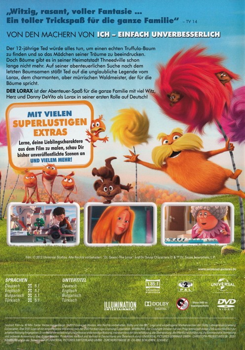 Der 12-jährige Ted würde alles tun, um einen echten Truffula-Baum zu finden und so das Mädchen seiner Träume zu beeindrucken. Doch Bäume gibt es in seiner Heimatstadt Thneedville schon lange nicht mehr. Auf seiner abenteuerlichen Suche nach dem letzten Baumsamen, stößt Ted auf die unglaubliche Legende vom Lorax, dem charmanten, aber mürrischen Waldmeister, der für die Bäumen spricht.
