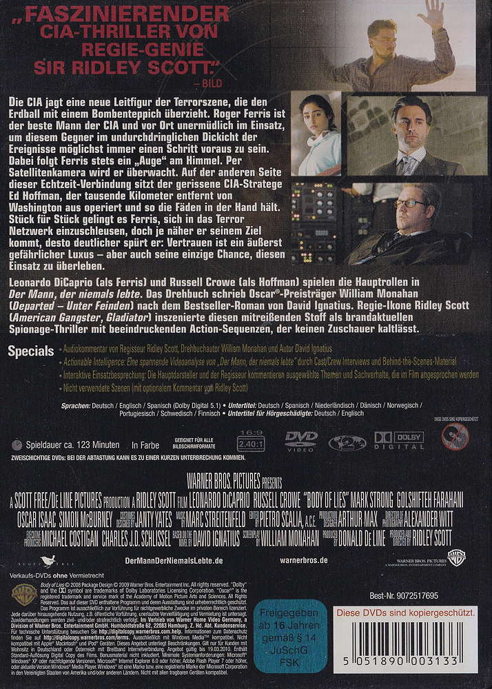 Die CIA jagt eine neue Leitfigur der Terrorszene, die den Erdball mit einem Bombenteppich überzieht. Roger Ferris ist der beste Mann der CIA und vor Ort unermüdlich im Einsatz, um diesem Gegner im undurchdringlichen Dickicht der Ereignisse möglichst immer einen Schritt voraus zu sein. Dabei folgt Ferris stets ein ''Auge'' am Himmel. Per Satellitenkamera wird er überwacht. Auf der anderen Seite dieser Echtzeit-Verbindung sitzt der gerissene CIA-Stratege Ed Hoffmann, der tausende Kilometer entfernt von Washington aus operiert und so die Fäden in der Hand hält. Stück für Stück gelingt es Ferris, sich in das Terror Netzwerk einzuschleusen, doch je näher er seinem Ziel kommt, desto deutlicher spürt er: Vertrauen ist ein äusserst gefährlicher Luxus - aber auch seine einzige Chance, diesen Einsatz zu überleben.