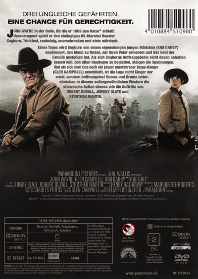 Eines Tages wird Cogburn von einem eigensinnigen jungen Mädchen (Kim Darby) angeheuert, den Mann zu finden, der ihren Vater ermordet und das Geld der Familie gestohlen hat. Als sich Cogburns Auftraggeberin nicht davon abhalten lassen will, den alten Haudegen zu begleiten, steigen die Spannungen. Und als sich dem Duo noch ein junger unerfahrener Texas-Ranger (Glen Campell) anschliesst, ist die Lage nicht länger nur ernst, sondern hoffnungslos! Humor und Drama unterstreichen in diesem aussergewöhnlichen Western die stürmische Action ebenso wie die Auftritte von Robert Duvall, Jeremy Slate und Strother Martin.