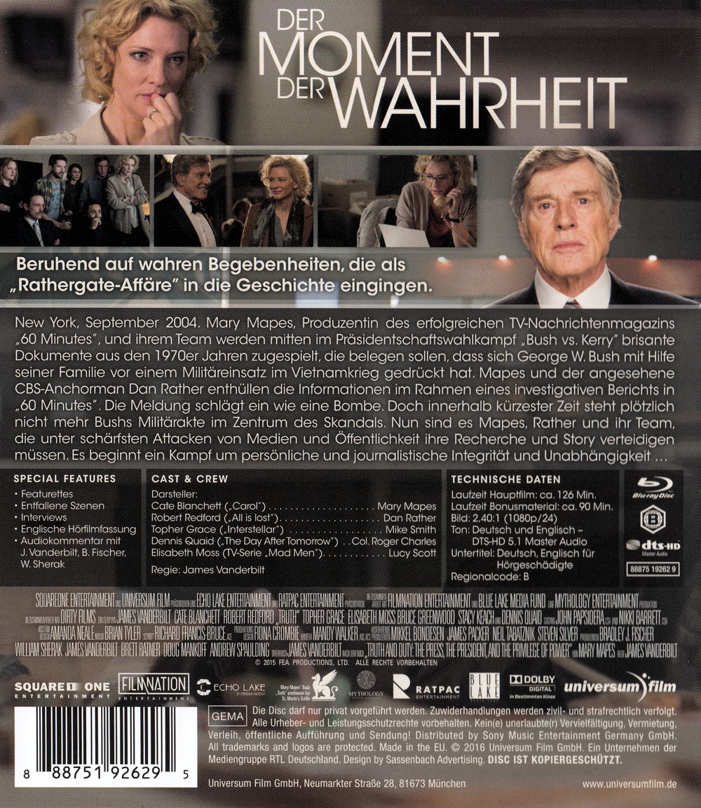 New York, September 2004. Mary Mapes wird als Produzentin von "60 Minutes", des erfolgreichsten TV-Nachrichtenmagazins des Landes, allseits respektiert und geschätzt. Neben ihrem beruflichen Erfolg führt sie auch privat ein glückliches Leben mit ihrer Familie. Doch als ihrem Team mitten im Präsidentschaftswahlkampf "Bush vs. Kerry" brisante Informationen über Dokumente aus den 1970er Jahren zugespielt werden, die belegen sollen, dass George W. Bush sich mit Hilfe seiner Familie vor einem Militäreinsatz im Vietnamkrieg gedrückt hat, gerät ihr Leben aus den Fugen. Mapes und der angesehene CBS-Anchorman Dan Rather enthüllen die Informationen im Rahmen eines investigativen Berichtes in "60 Minutes". Die Meldung schlägt ein wie eine Bombe. Doch innerhalb kürzester Zeit steht plötzlich nicht mehr Bushs Militärakte im Zentrum des Skandals. Es sind Mapes, Rather und ihr Team, die unter schärfsten Attacken von Medien und Öffentlichkeit ihre Story und deren Recherche verteidigen müssen. Während Dan Rather, Marys langjähriger Kollege und väterlicher Freund, vollstes Vertrauen in seine Produzentin hat, bringen die Angriffe Mary an ihre persönlichen Grenzen, als sich auch ihr Vater und selbst ihr eigener Sender gegen sie wenden. Es beginnt ein Kampf um persönliche und journalistische Integrität und Unabhängigkeit...