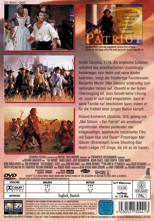 Tom Wilkinson, Mel Gibson, Chris Cooper, Donal Logue, Tchéky Karyo, Jason Isaacs, Adam Baldwin, Heath Ledger, Joely Richardson, Gregory Smith...Leon Rippy, Rene Auberjonois, Lisa Brenner, Jay Arlen Jones, Joey D. Vieira