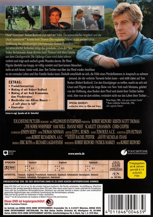 Ein schrecklicher Reitunfall bringt das geordnete Leben der New Yorker Redakteurin Annie und ihrer Familie aus dem Gleichgewicht. Die 14jährige Grace wird dabei schwer verletzt und trägt auch seelisch grosse Wunden davon. Ihr Pferd Pilgrim überlebt nur knapp, ist völlig verstört und lässt keinen Menschen mehr an sich heran. Annie weiss, dass ihre Tochter nur über das Pferd wieder Anschluss an ein normales Leben und ihre Familie finden kann. Deshalb entschliesst sie sich, die Hilfe eines Pferdeflüsterers in Anspruch zu nehmen - jemand, der die verletzte Tierseele heilen kann - und stösst dabei auf Tom Booker. Um den Einzelgänger zu treffen, macht sie sich mit Grace und Pilgrim auf die lange Reise von New York nach Montana, geleitet von der Hoffnung, dass Booker dem Pferd und damit ihrer Tochter helfen wird. Aber was sie dort erleben, verändert nicht nur das Leben ihrer Tochter...