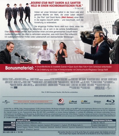 Der ehrgeizige Politiker Norris steht kurz davor, einen Sitz im US-Senat zu bekommen, als er sich in die schöne Balletttänzerin Elise (Emily Blunt) verliebt. Aber zwischen ihnen und einer gemeinsamen Zukunft stehen mysteriösen Agenten, die alles zu verhindern versuchen, was nicht ihrem Plan entspricht.