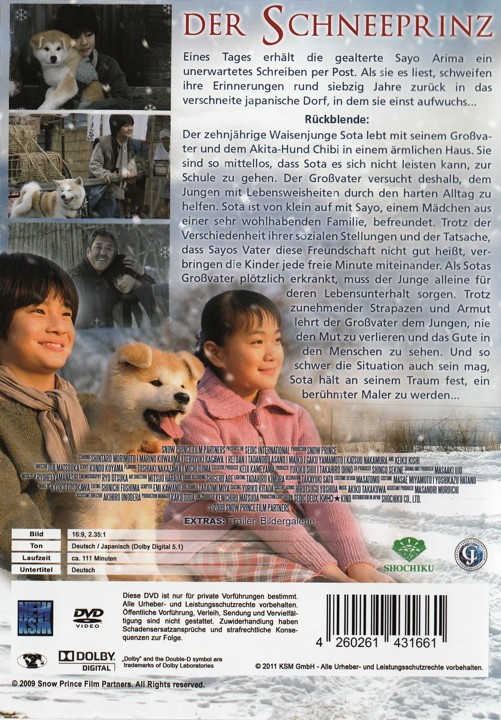Eine überwältigende Verfilmung des Bestsellers A Dog of Flanders der englischen Schriftstellerin Marie Louise de la Ramée. Der zehnjährige Waisenjunge Sota lebt mit seinem Grossvater und dem Akita-Hund Chibi in kargen Verhältnissen.