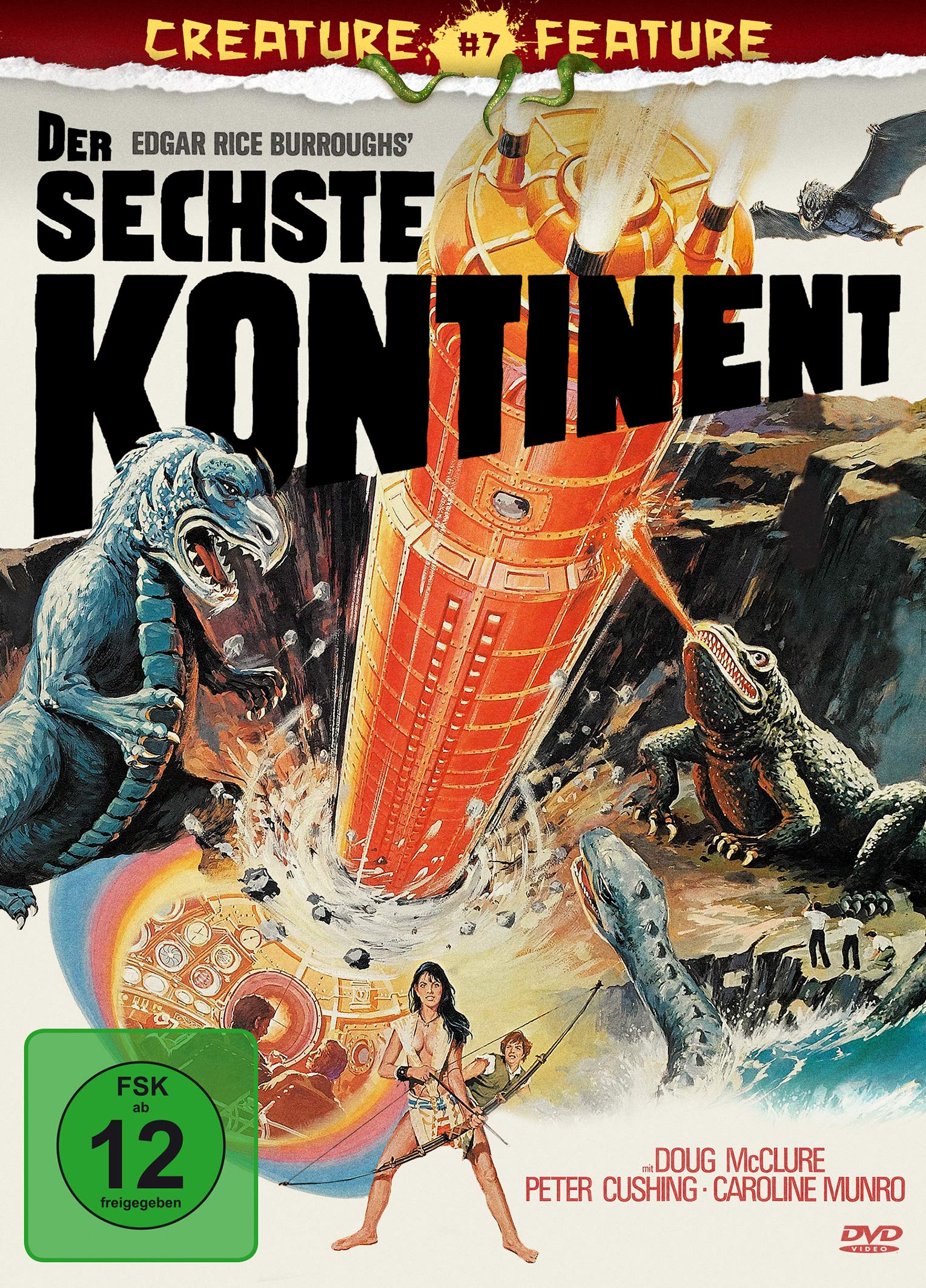 Dr. Abner Perry und sein Assistent David Innes wollen mithilfe einer gigantischen Bohrmaschine das Erdinnere erforschen. Was sie dort finden, übersteigt ihre kühnsten Vorstellungen: ein sechster Kontinent aus tiefschwarzen Höhlen und brodelnder Lava, der von gigantischen Monstern, Dinosauriern, einem urzeitlichen Menschenstamm und prähistorischen Vögeln mit telepathischen Fähigkeiten bewohnt wird. Das ist dann gar noch beängstigender als das schon bekannte Grauen an der Erdoberfläche! Dr. Perry und David stellen sich den Gefahren, auf der Suche nach einem Weg zurück nach oben...Der sechste Kontinent basiert auf einem Roman von Tarzan-Schöpfer Edgar Rice Burroughs. Die überaus erfolgreiche Amicus-Produktion konnte unter der Regie von Kevin Connor (Caprona - Das vergessene Land) ein Starensemble unter die Erde schicken: Hammer-Ikone und Star Wars-Bösewicht Peter Cushing, Bondgirl Caroline Munro (James Bond 007 - Der Spion, der mich liebte) und Doug McClure. Neben den genauso zahlreichen wie liebevollen Monstereffekten und Setpieces besonders beeindruckend: die Kameraarbeit von Alan Hume (Die Rückkehr der Jedi-Ritter).