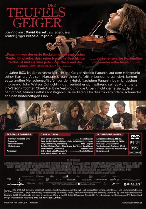 Im Jahre 1830 ist der berühmt-berüchtigte Geiger Niccolò Paganini auf dem Höhepunkt seiner Karriere. Als sein Manager Urbani einen Auftritt in London organisiert, kommt es zu grossen Menschenaufläufen vor dem Hotel. Nachdem Paganini beim britischen Impresario John Watson Zuflucht findet, verliebt er sich während seines Aufenthalts in Watsons Tochter Charlotte. Eine Verbindung, die Urbani nicht gerne sieht, da er befürchtet, seinen Einfluss auf Paganini zu verlieren. Um dies zu verhindern, schmiedet er einen hinterhältigen Plan...