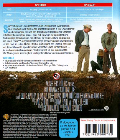 Sein Verbrechen: Unangepaßtheit. Sein Urteilsspruch: Zwangsarbeit. Paul Newman spielt eine seiner beliebtesten Rollen in DER UNBEUGSAME: den Einzelgänger, der sich den despotischen Regeln seiner Gefangenschaft nicht unterordnen kann - oder will. Newman zur Seite steht eine hochkarätige Darstellerriege, darunter der für seine leistung als Dragline mit einem Oscar ausgezeichnete George Kennedy und die unvergessliche Jo Van Fleet als Lukes Mutter. Strother Martin spielt den Captain , der Luke mit dem mittlerweile legendären Satz verspottet: "Was wir hier haben ... ist ein Kommunikationsproblem." Problematisch ist hier jedoch nichts. Der Unbeugsame überzeugt mit intelligentem Humor und dynamischer Story.